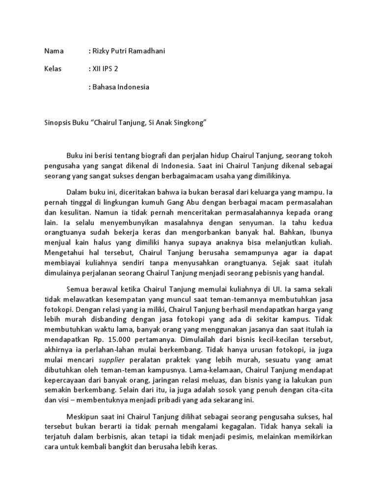 Teks Ulang Biografi Buku Chairul Tanjung Si Anak Singkong Pdf